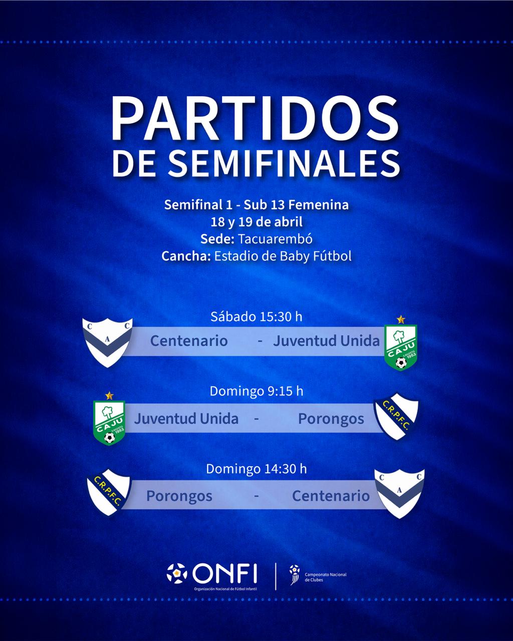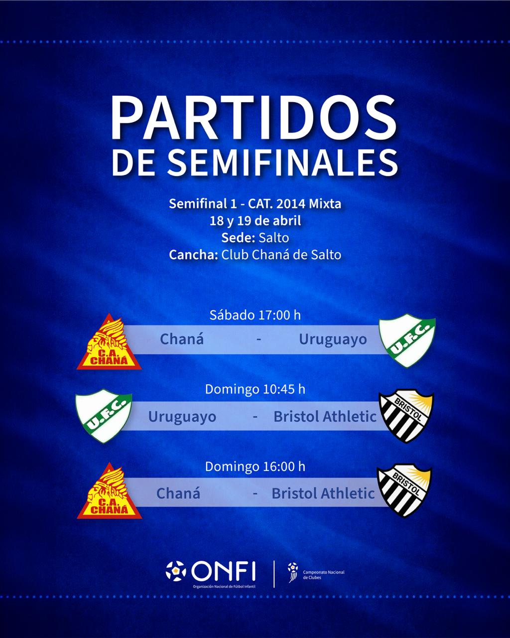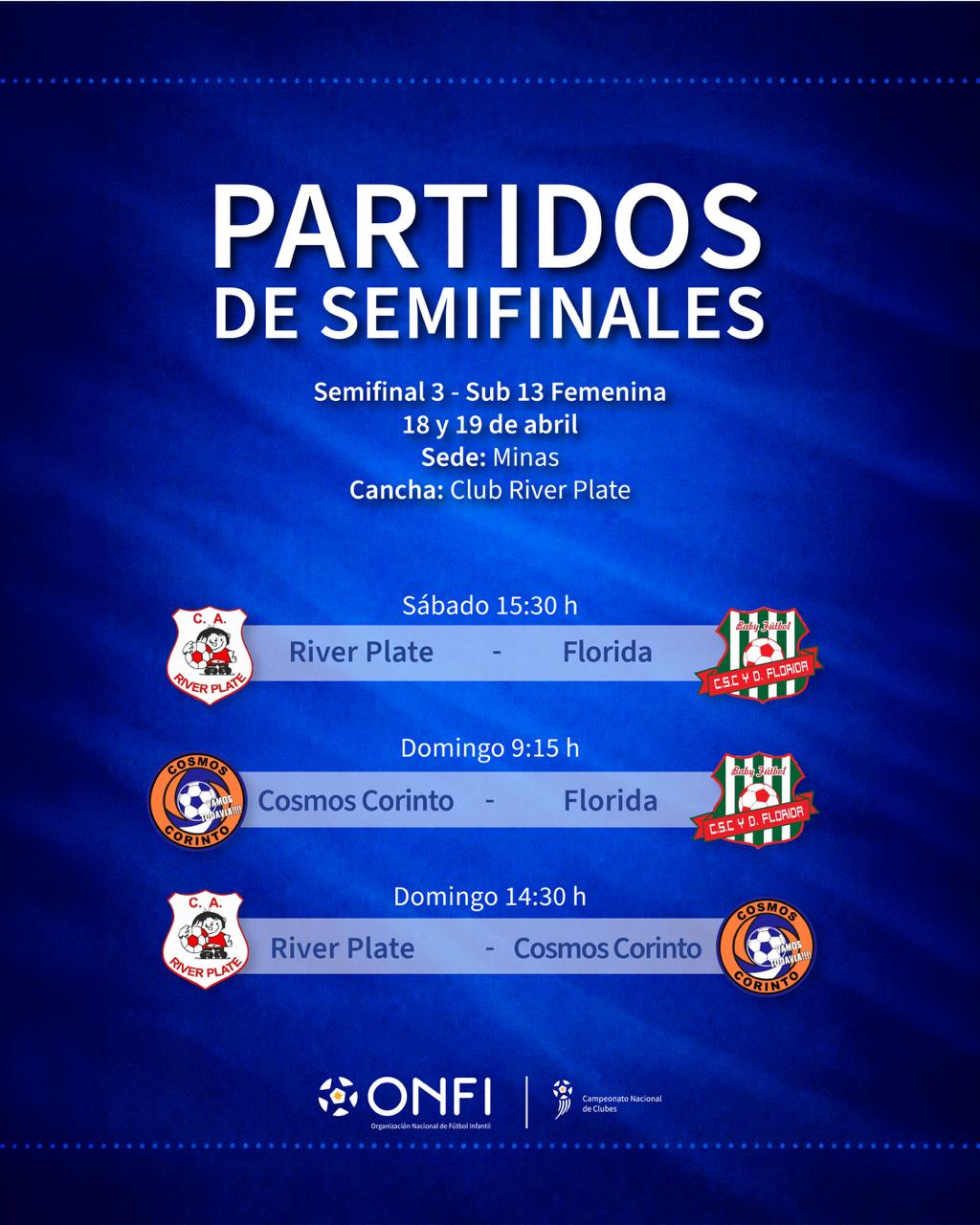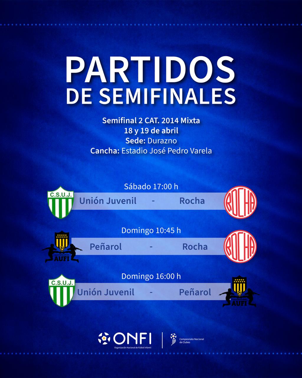 El Campeonato Nacional de Clubes 2026 entra en su etapa decisiva con la confirmación de los cruces de semifinales, tanto en la categoría 2014 mixta como en la Sub 13 femenina, que se disputarán los días 18 y 19 de abril en la ciudad de Durazno.